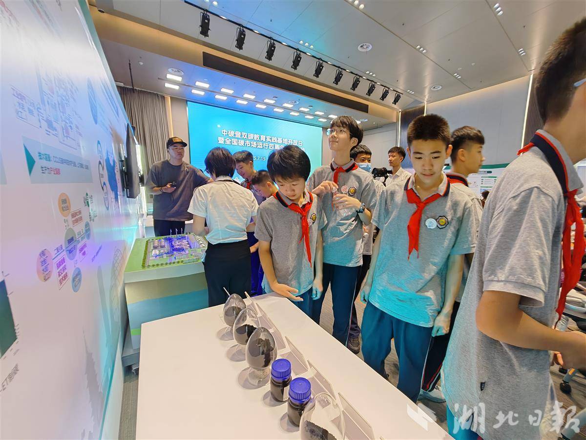 湖北日报讯(记者左晨、实习生胡梓杨、刘竟晖)“真神奇呀,没想到这些废弃物也能变成宝,以后我也要践行低碳生活。7月15日,在中碳登双碳教育实践基地开放日暨全国碳市场运行四周年主题活动上,武珞路中学学生马廉杰感叹。当天,中碳登邀请社会公众近距离参观双碳技术展,碳减排、碳监测、碳捕集、资源回收再利用等12项尖端成果集中亮相。